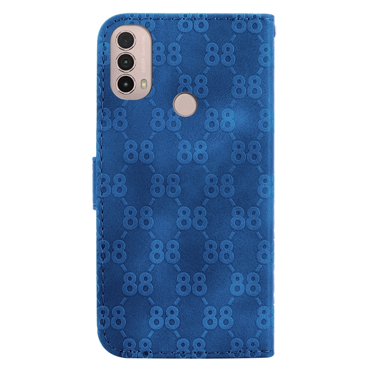 Estuche para Motorola Moto E20 E30 E40 de Cuero en Relieve Doble Forma de 8 (Azul)