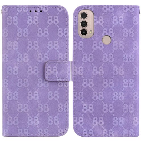 Estuche para Motorola Moto E20 E30 E40 de Cuero en Relieve con Doble Forma de 8 (Púrpura)