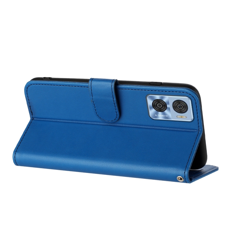 Funda de Cuero para Motorola Moto E22 Datura Flower con Tapa En Relieve (Azul)