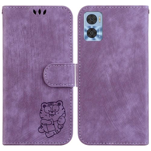 Funda para Motorola Moto E22 / E22I de Cuero con Relieve Little Tiger (Púrpura)
