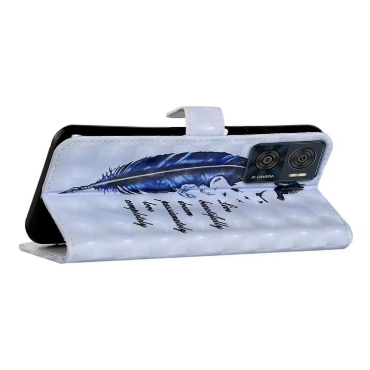 Funda de Cuero para Motorola Moto E22 con Dibujo 3D en Relieve al Óleo (Pluma Azul)