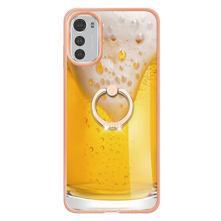 Estuche para Motorola Moto E32 4G / E32S Imd Doble Cara con Galvanoplastia y Soporte para Anillo (Cerveza de Barril)