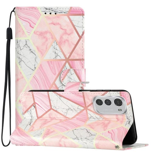 Estuche para Teléfono Motorola Moto E32 de Cuero con Dibujo Coloreado (Mármol Rosa)
