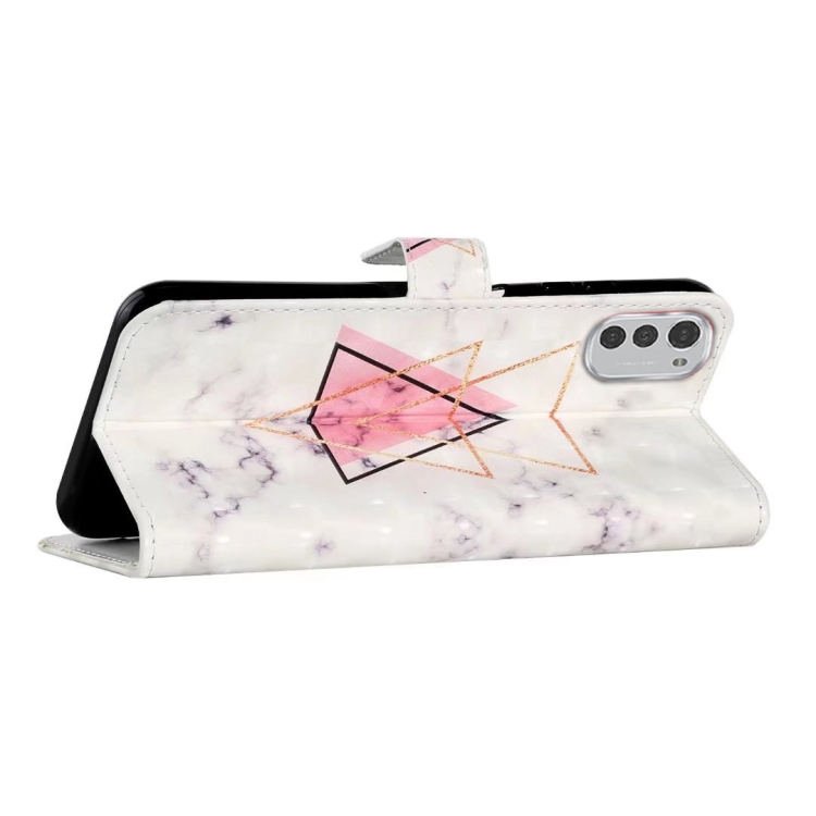 Funda de Cuero para Motorola Moto E32 con Dibujo 3D en Relieve al Óleo (Mármol Triangular)
