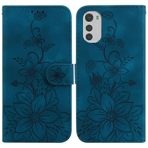 - 1x Funda de Cuero en Relieve para Motorola Moto E32 Lily (Azul Oscuro)