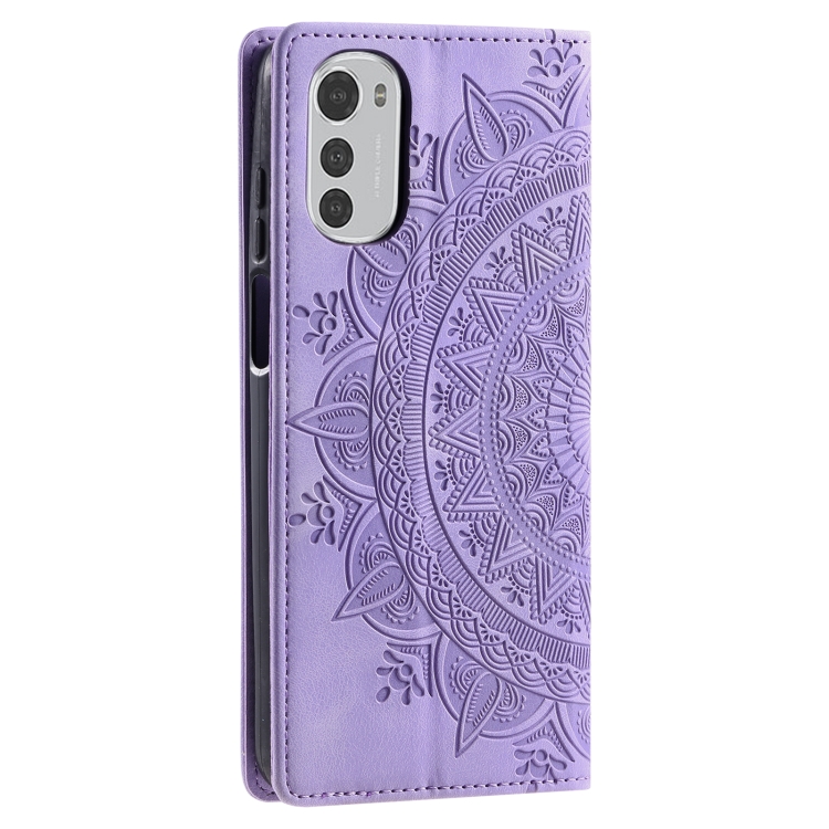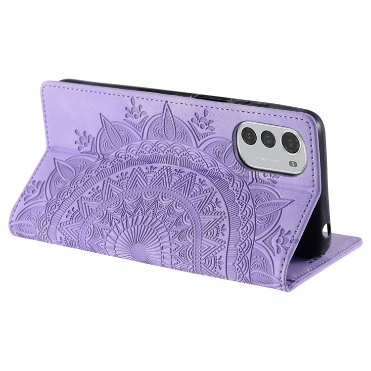 Funda de Cuero Magnética en Relieve para Motorola Moto E32 Totem (Púrpura)