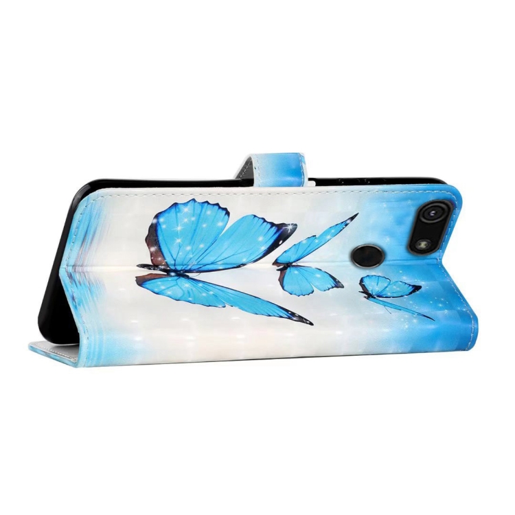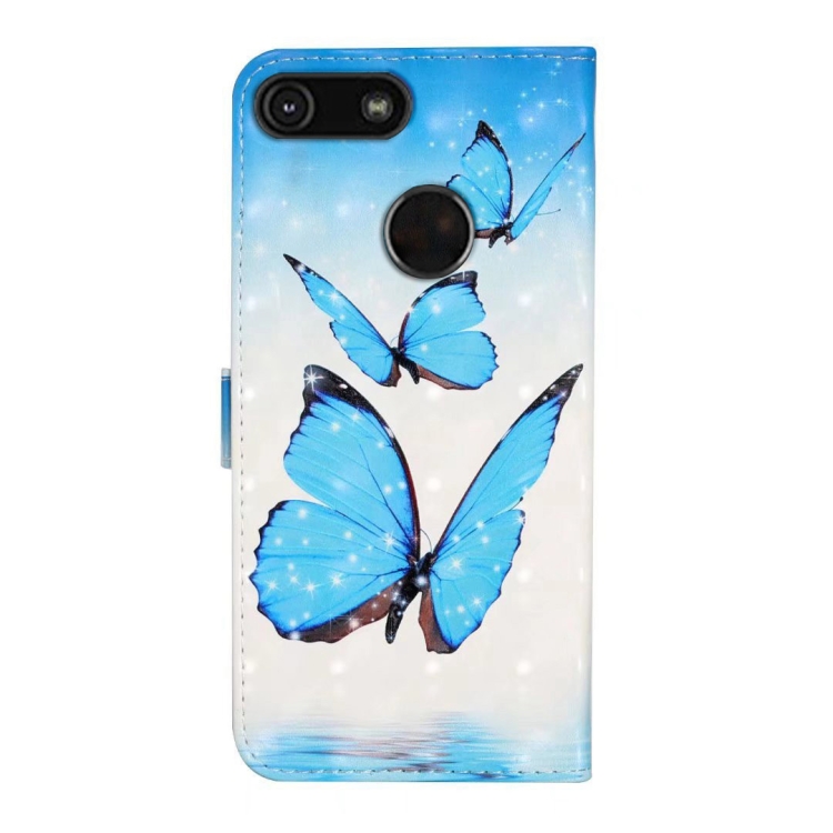 Funda de Cuero para Motorola Moto E6 Play con Dibujo 3D en Relieve al Óleo (3 Mariposas)