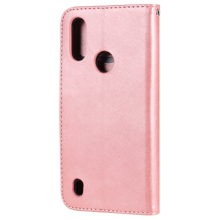 Para Motorola Moto E6s (2020) Estuche de cuero con tapa horizontal con cremallera y textura de becerro con soporte, ranuras para tarjetas y función de billetera (oro rosa)