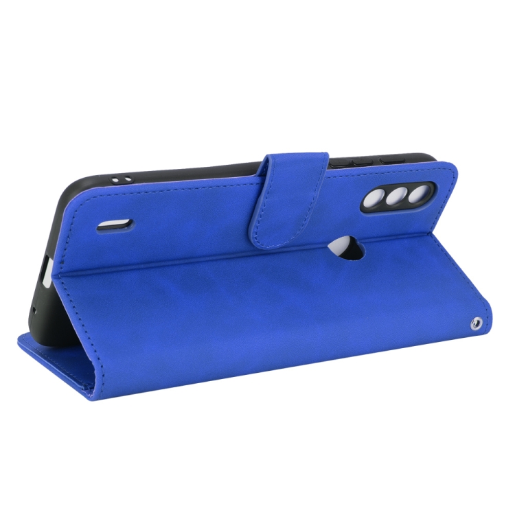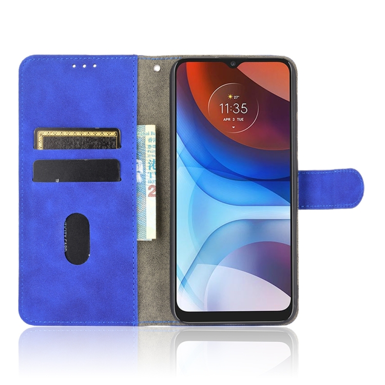 Para Motorola Moto E7 Potencia Color Sólido Siente Siente Hebilla Magnética Horizontal Flip Becerra Textura PU Funda de cuero con soporte y ranuras para tarjetas (Azul)