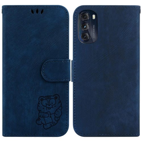 Funda para Motorola Moto G 2022 de Cuero con Relieve Little Tiger (Azul Oscuro)