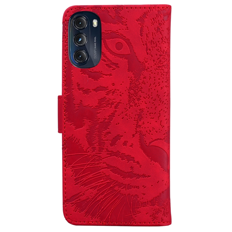 Funda de Cuero para Motorola Moto G 2022 con Patrón Tigre y Volteo Horizontal (Rojo)