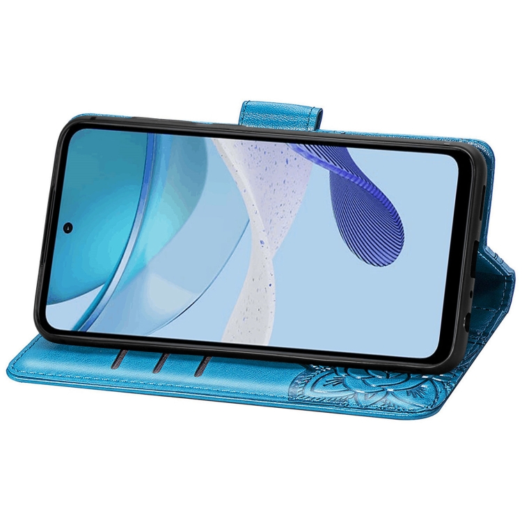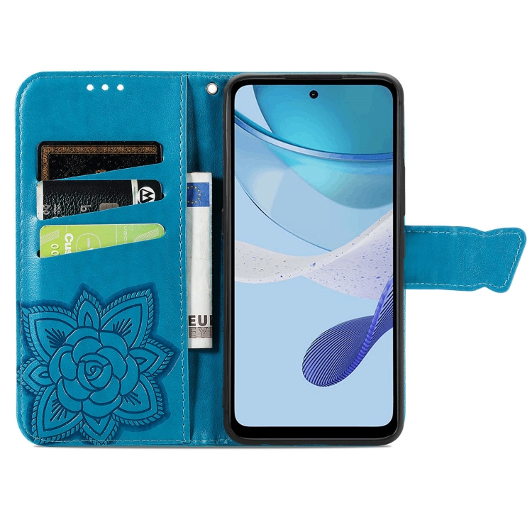 - 1x Funda de Cuero en Relieve para Motorola Moto G 5G (2023) Butterfly Love Flower (Azul)