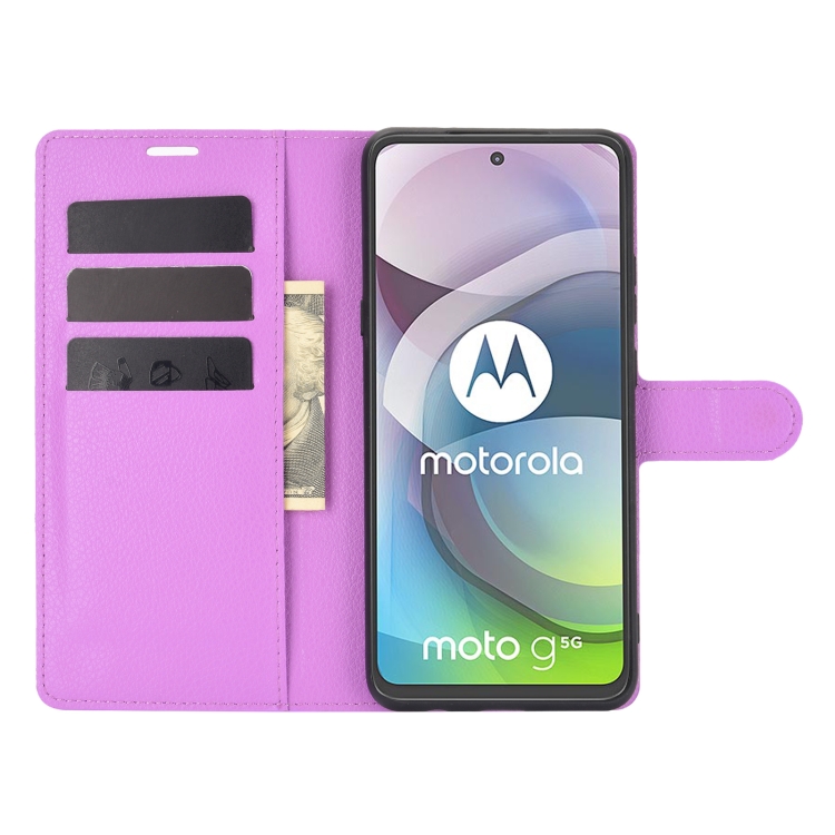 Para Motorola Moto G 5G Litchi Texture Funda protectora con tapa horizontal con soporte, ranuras para tarjetas y billetera (púrpura)