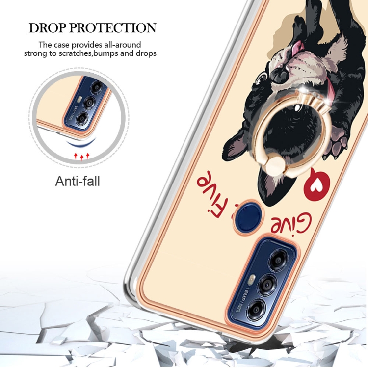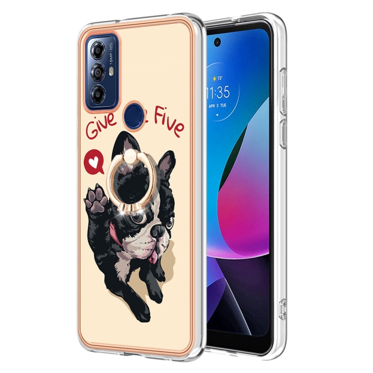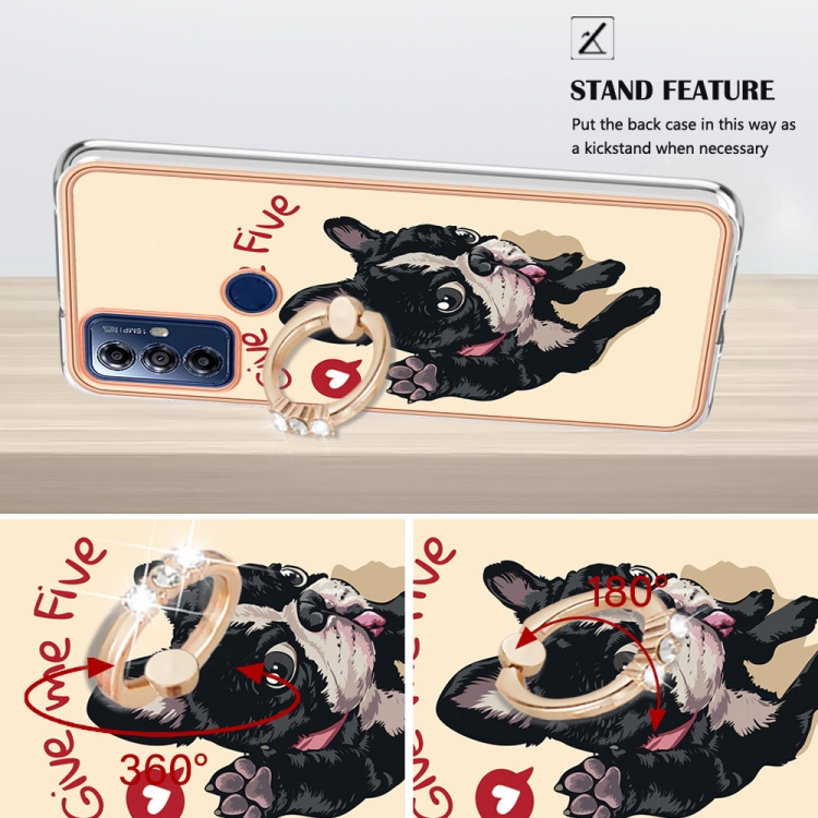 Caja para Motorola Moto G Play 2023 IMD Doble Cara Galvanizada con Soporte para Anillo (Perro de la Suerte)