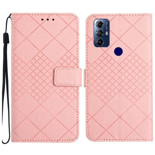 - 1x Funda de Cuero para Motorola Moto G Play (2023) y G Pure (2021) con Textura de Rejilla Rómbica (Rosa)