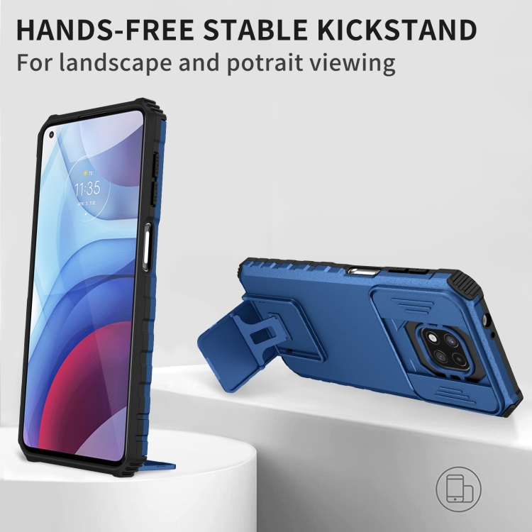 - 1x Funda deslizante con Soporte estereoscópico para Motorola Moto G Power (2021) (Azul)