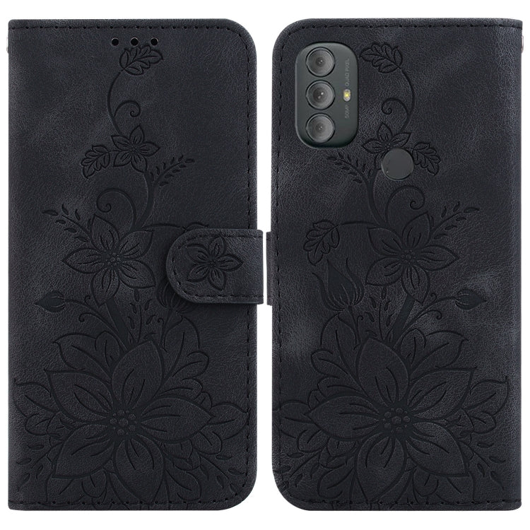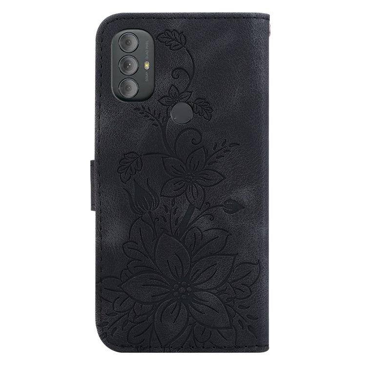 Funda de Cuero con Relieve Lily para Motorola Moto G Power 2022 (Negro)
