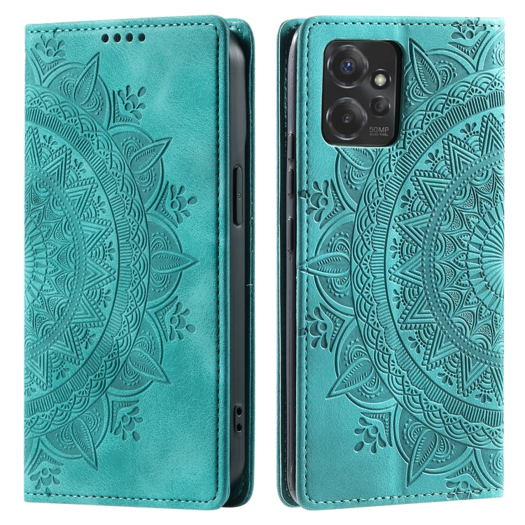 Estuche para Motorola Moto G Power 5G 2023 de Cuero Magnético con Relieve de Tótem (Verde)