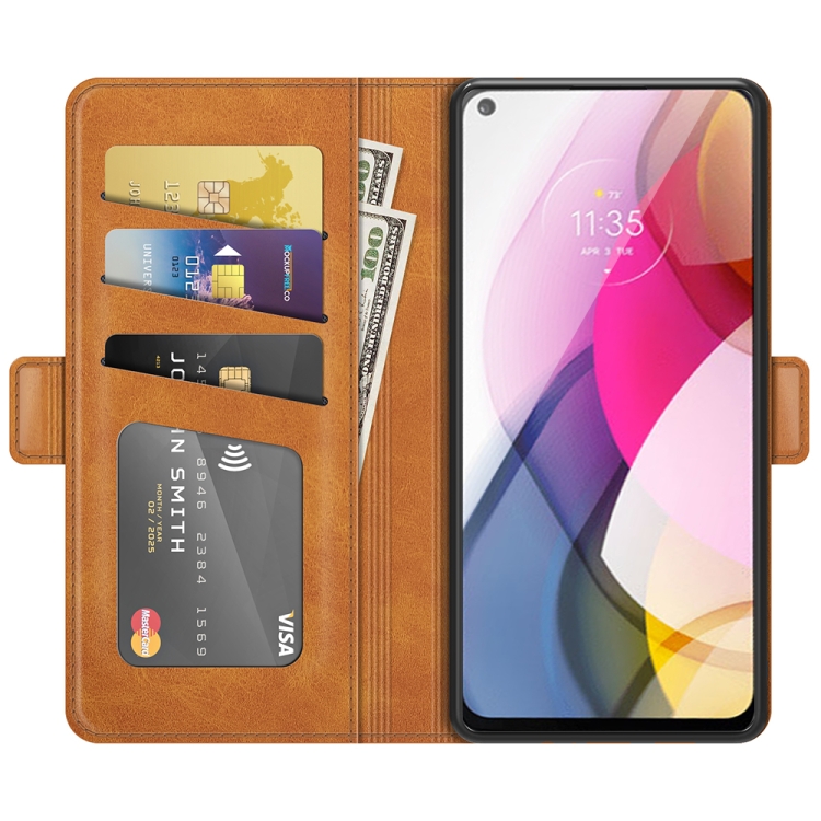 Para Motorola Moto G Stylus 2021 Hebilla magnética de doble lado Doble de cuero Horizontal Flip Funda con soporte y ranuras para tarjetas y billetera (Amarillo)