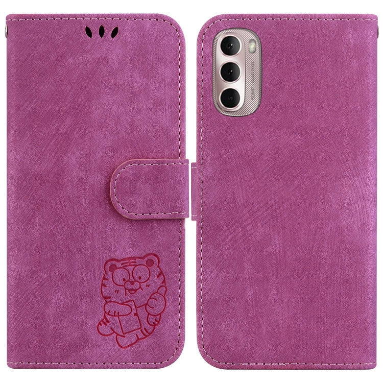 Funda para Motorola Moto G Stylus 4G 2022 de Cuero con Relieve Little Tiger (Rojo Rosa)