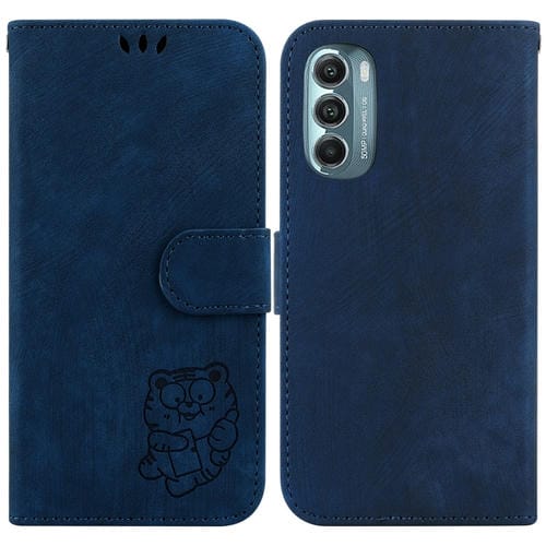 Funda para Motorola Moto G Stylus 5G 2022 de Cuero con Relieve Little Tiger (Azul Oscuro)