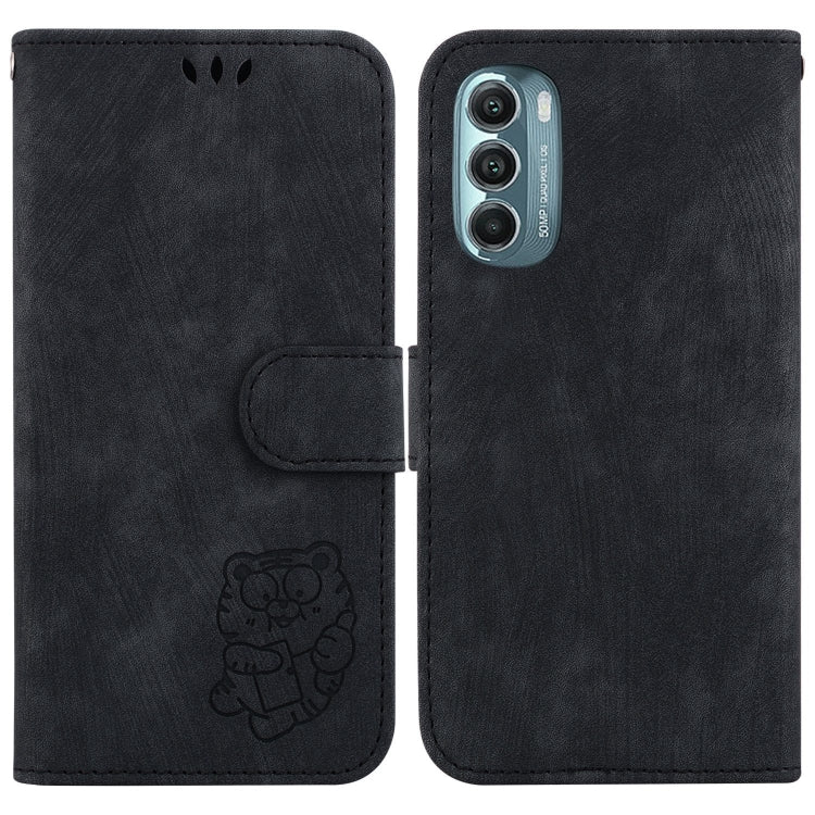 Funda para Motorola Moto G Stylus 5G 2022 de Cuero con Relieve Little Tiger (Negro)