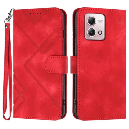 Funda de Cuero Motorola Moto G Stylus 5G 2023 con Patrón de Líneas y Sensación de Piel (Rojo)