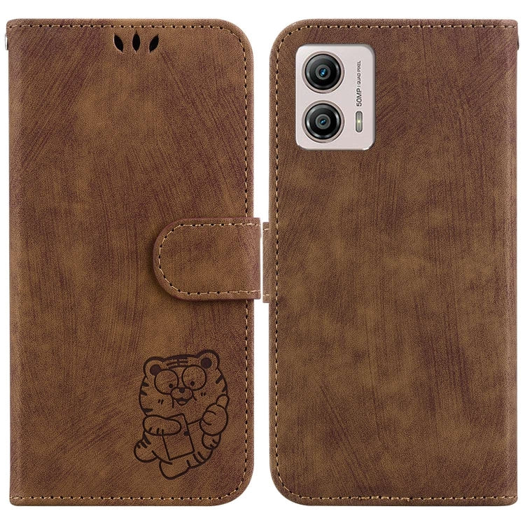 Funda de Cuero para Motorola Moto G13 G23 G53 con Relieve Little Tiger (Marrón)