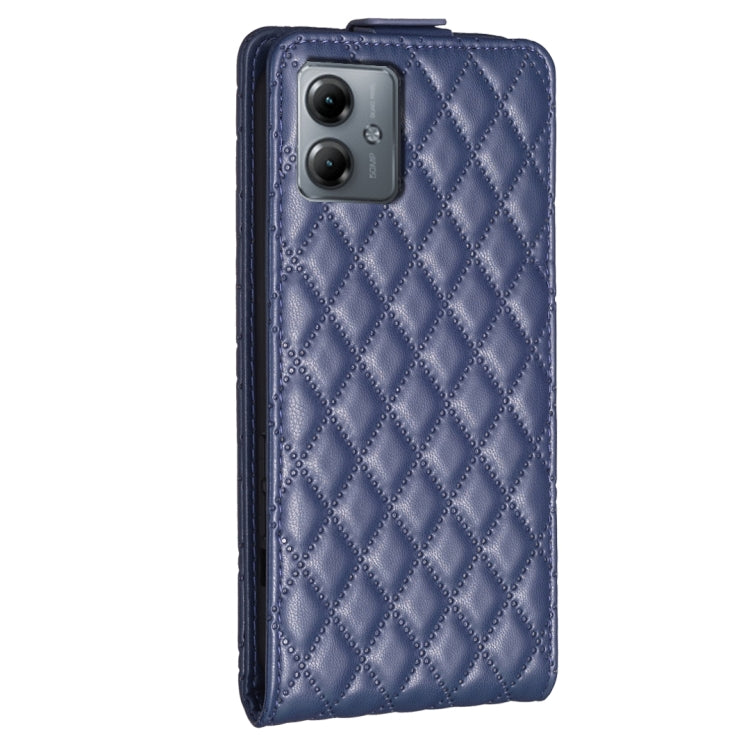 Funda de Cuero para Motorola Moto G14 4G con Tapa Vertical y Diseño Diamond Lattice (Azul)