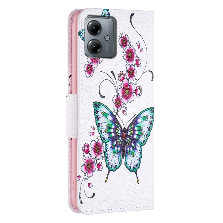 Funda de Cuero para Motorola Moto G14 4G con Patrón de Mariposa y Flores Coloreado