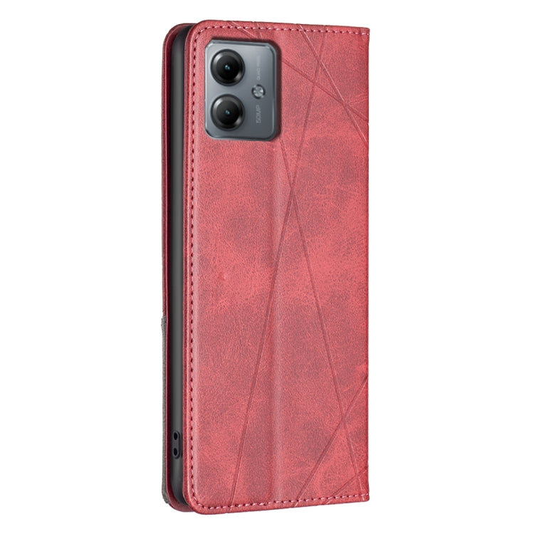 Funda de Cuero Magnético para Motorola Moto G14 4G con Textura de Rombo (Rojo)