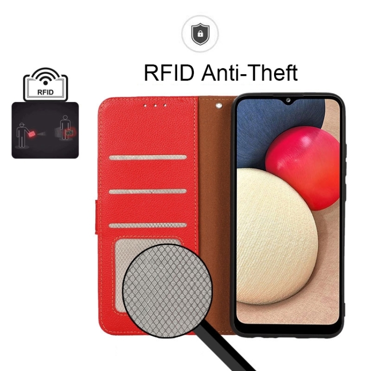 Funda para Motorola Moto G14 4G Khazneh Litchi Texture con Protección RFID de Cuero (Rojo)