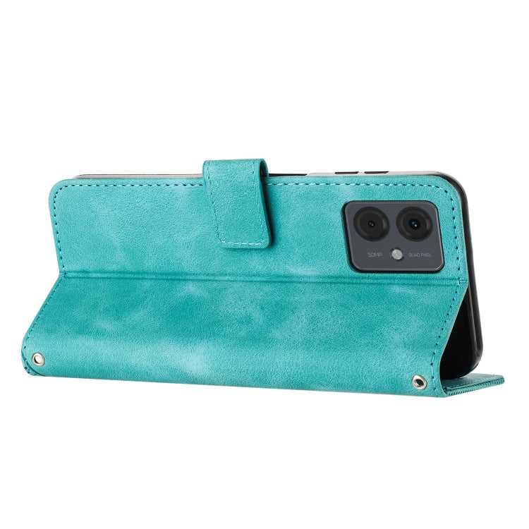 Funda de Cuero para Motorola Moto G14 Dream Triangle con Cordón (Verde)
