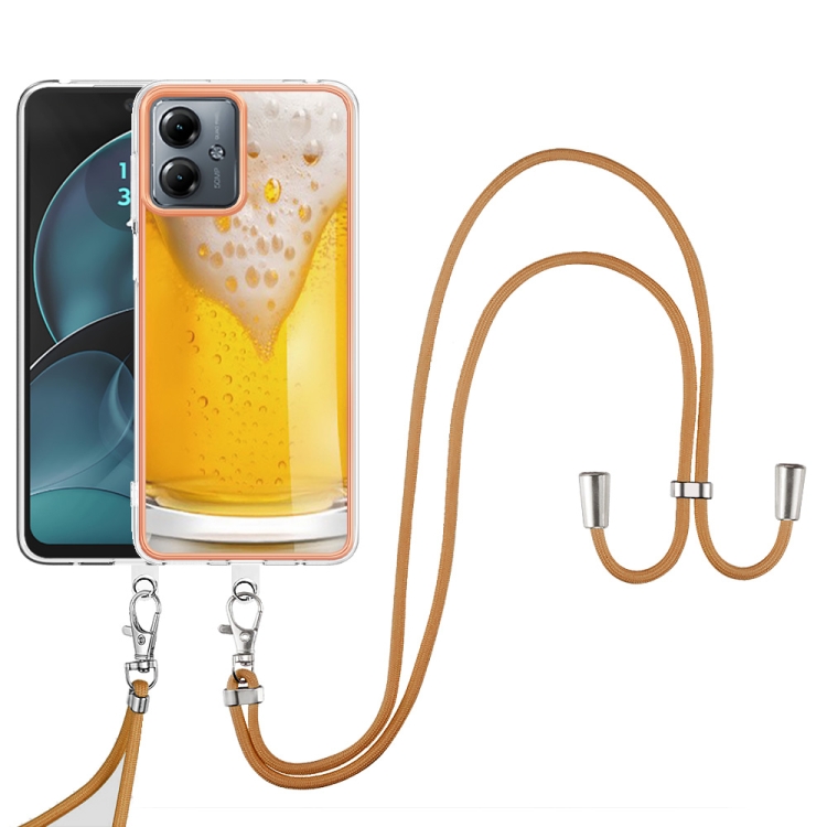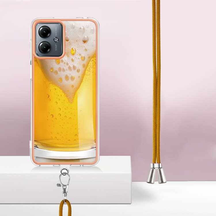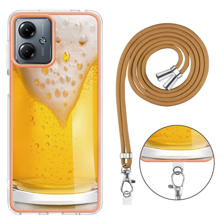 Estuche para Motorola Moto G14 Imd Doble Cara con Galvanoplastia y Cordón (Cerveza de Barril)