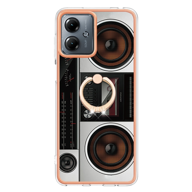 Estuche para Motorola Moto G14 Imd Doble Cara con Galvanoplastia y Soporte Anillo (Radio Retro)