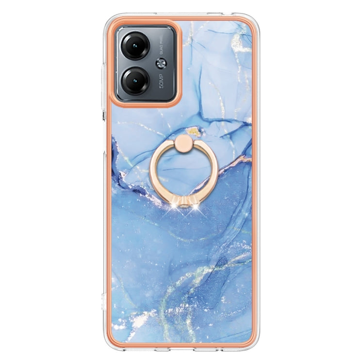 Estuche para Motorola Moto G14 IMD Doble Cara Mármol Galvanizado con Anillo (Azul)