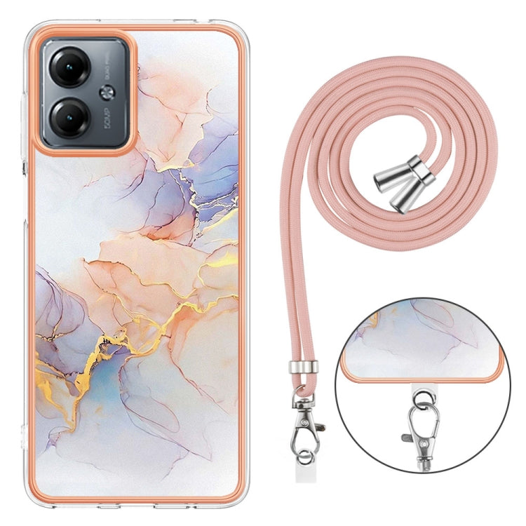 Estuche para Motorola Moto G14 TPU Imd con Galvanoplastia y Cordón (Mármol Blanco)