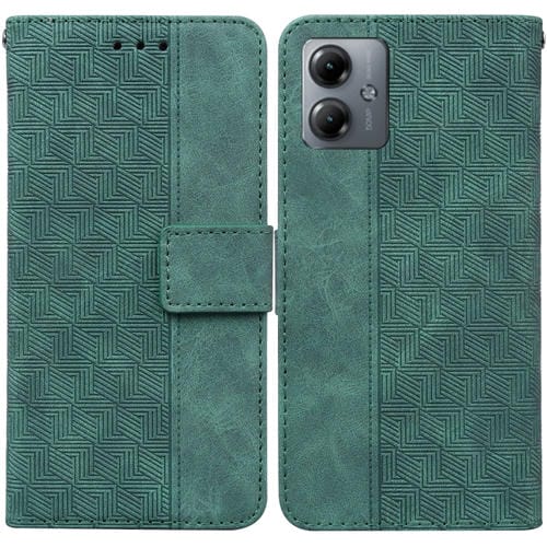 - 1x Funda de Cuero para Motorola Moto G14 con Relieve Geométrico (Verde)