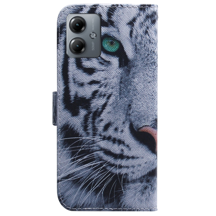 - 1x Funda de Cuero para Motorola Moto G14 con Tapa y Dibujo Coloreado (Tigre)