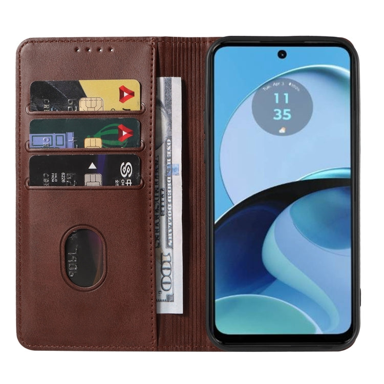 Funda de Cuero para Motorola Moto G14 con Cierre Magnético (Marrón)