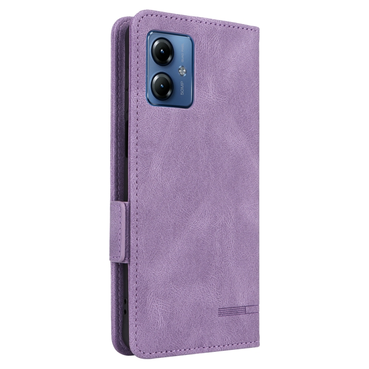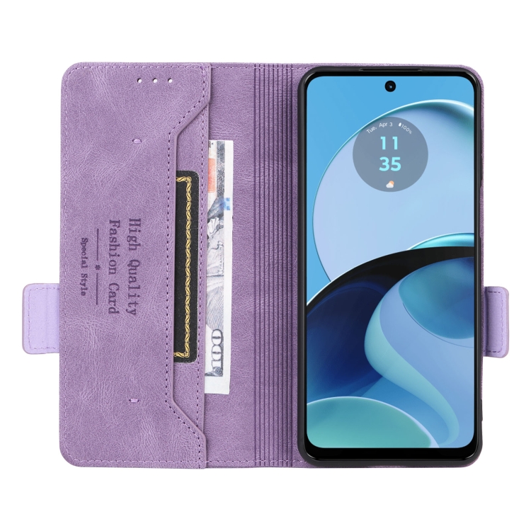Funda de Cuero para Motorola Moto G14 con Cierre Magnético (Púrpura)