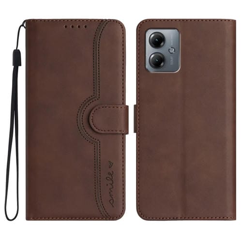 Funda de Cuero para Motorola Moto G14 con Patrón Heart Skin Feel (Marrón)