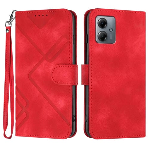 - 1x Funda de Cuero para Motorola Moto G14 con Textura Line Pattern (Rojo)
