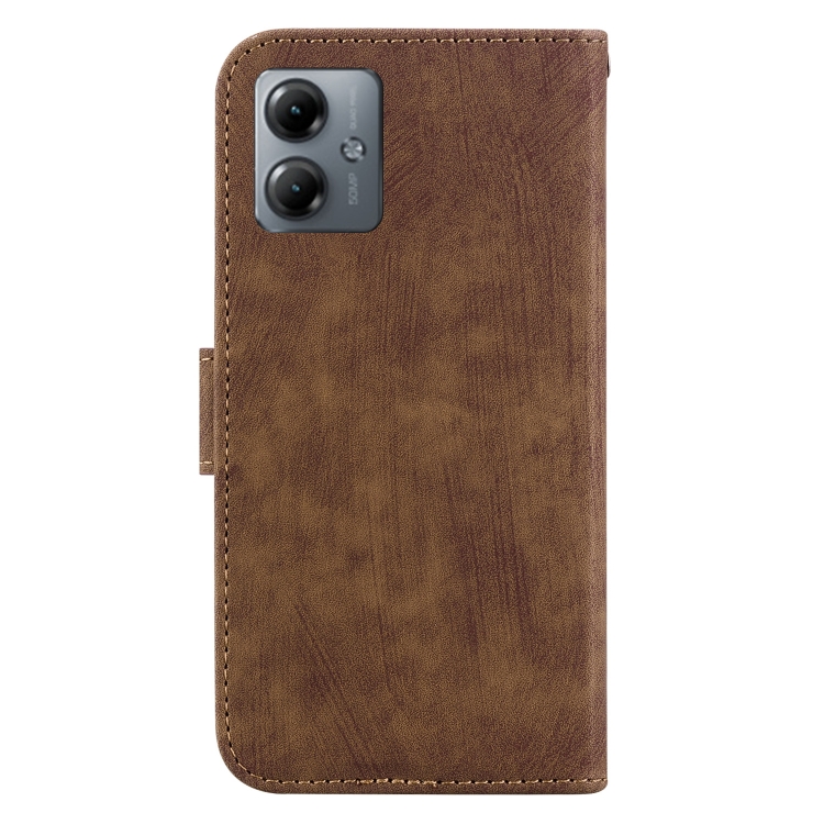 Funda de Cuero en Relieve para Motorola Moto G14 Little Tiger para Teléfono (Marrón)