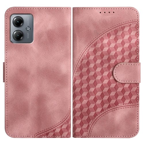- 1x Funda de Cuero para Motorola Moto G14 Yx0060 con Relieve y Cabeza de Elefante con Cordón (Rosa)