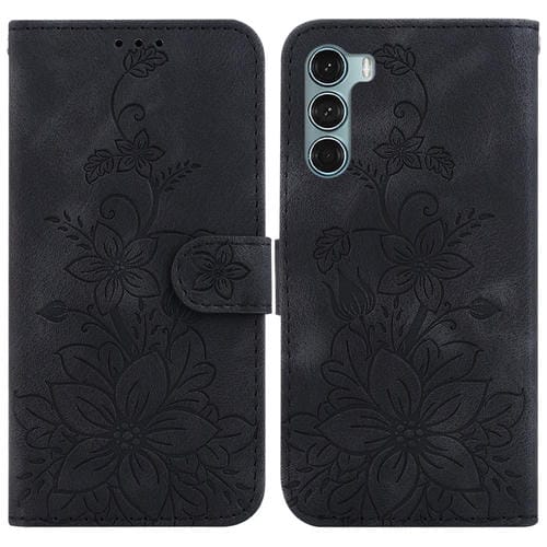 Funda para Motorola Moto G200 5G Edge S30 de Cuero con Relieve Lily (Negro)