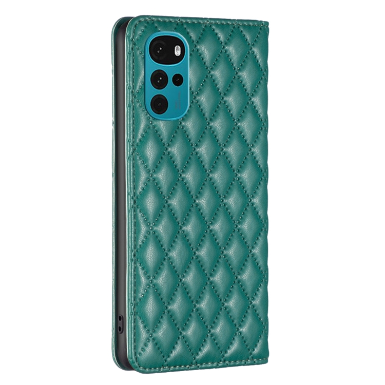 Funda Flip de Cuero Magnética para Motorola Moto G22 Diamond Lattice (Verde)