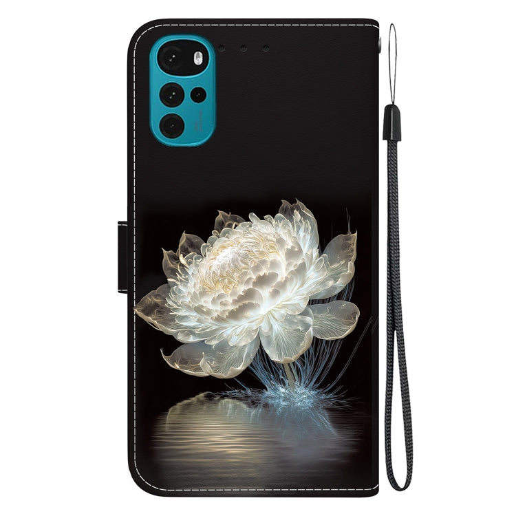 Estuche de Cuero para Motorola Moto G22 con Dibujo Coloreado y Textura de Cristal (Peonía de Cristal)