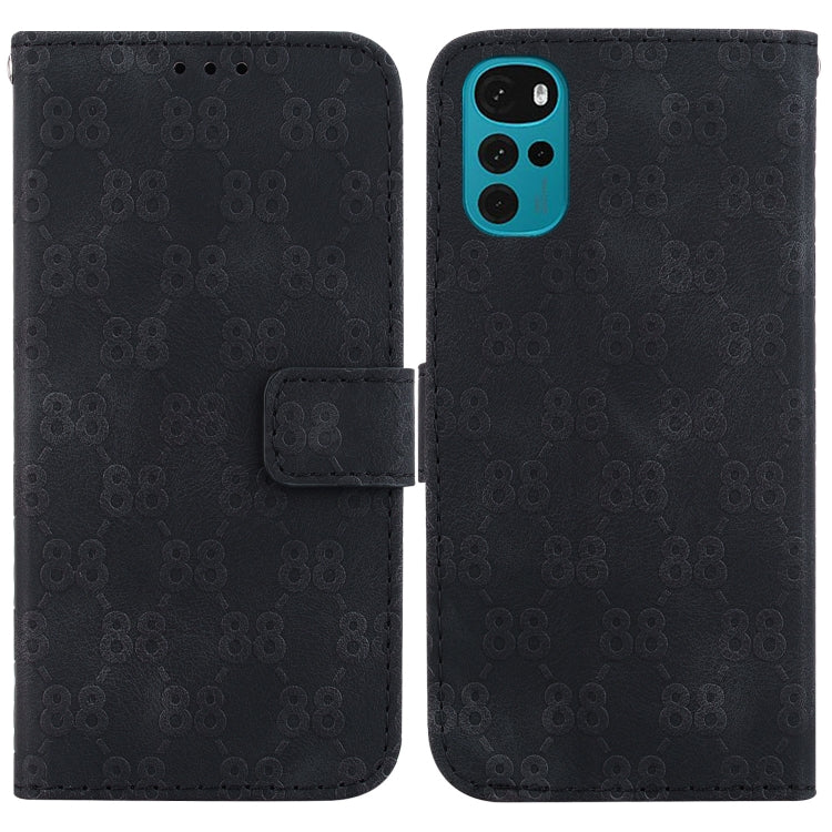 Estuche para Motorola Moto G22 de Cuero en Relieve con Doble Forma de 8 (Negro)