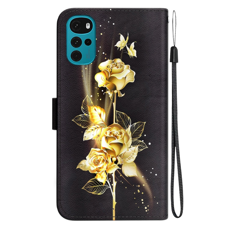 Funda de Cuero para Motorola Moto G22 con Dibujo Coloreado y Textura de Cristal (Mariposa Dorada Rosa)